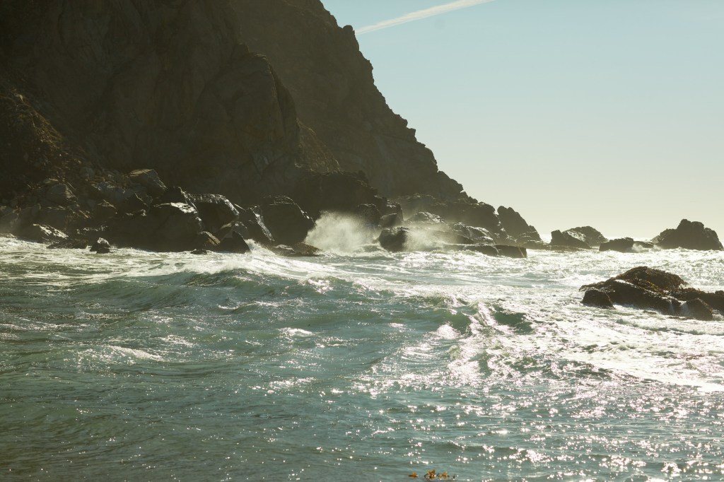 Havet är alltid kallt här, men extra kyligt i november. Ändå kul att springa runt på Pfiffer Beach!