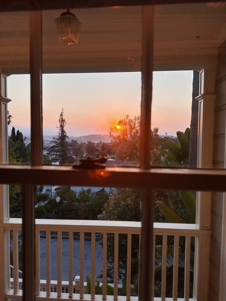 Det är riktigt röda soluppgångar nu, vilket jag önskar att jag kunde älska utan förbehåll. Men det är delvis på grund av skogsbränderna öster om stan, röken gör solen röd-orange.