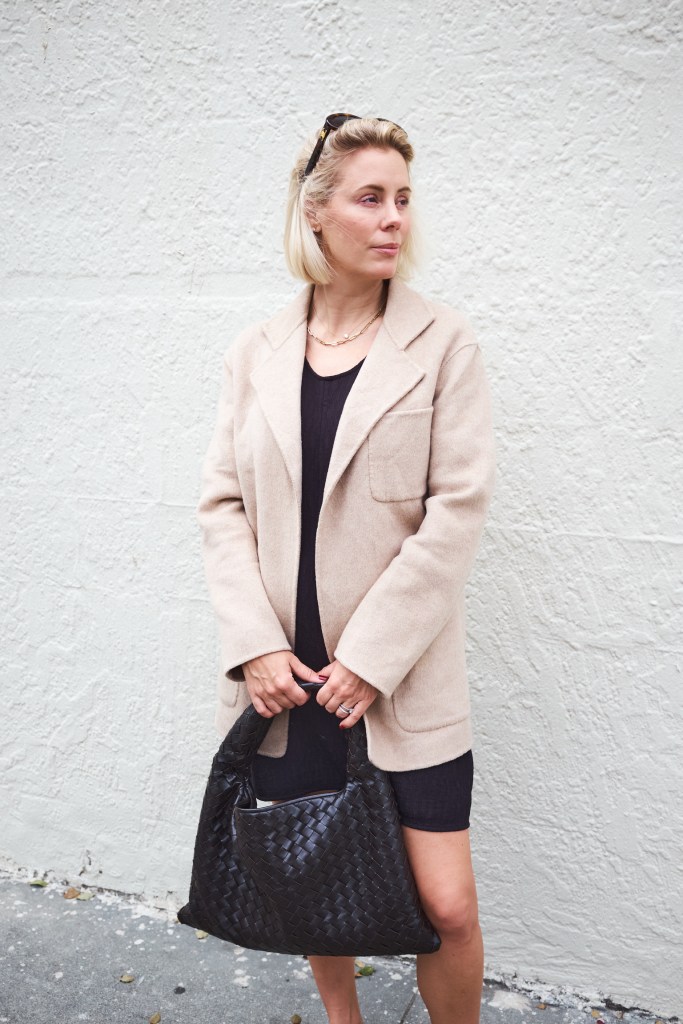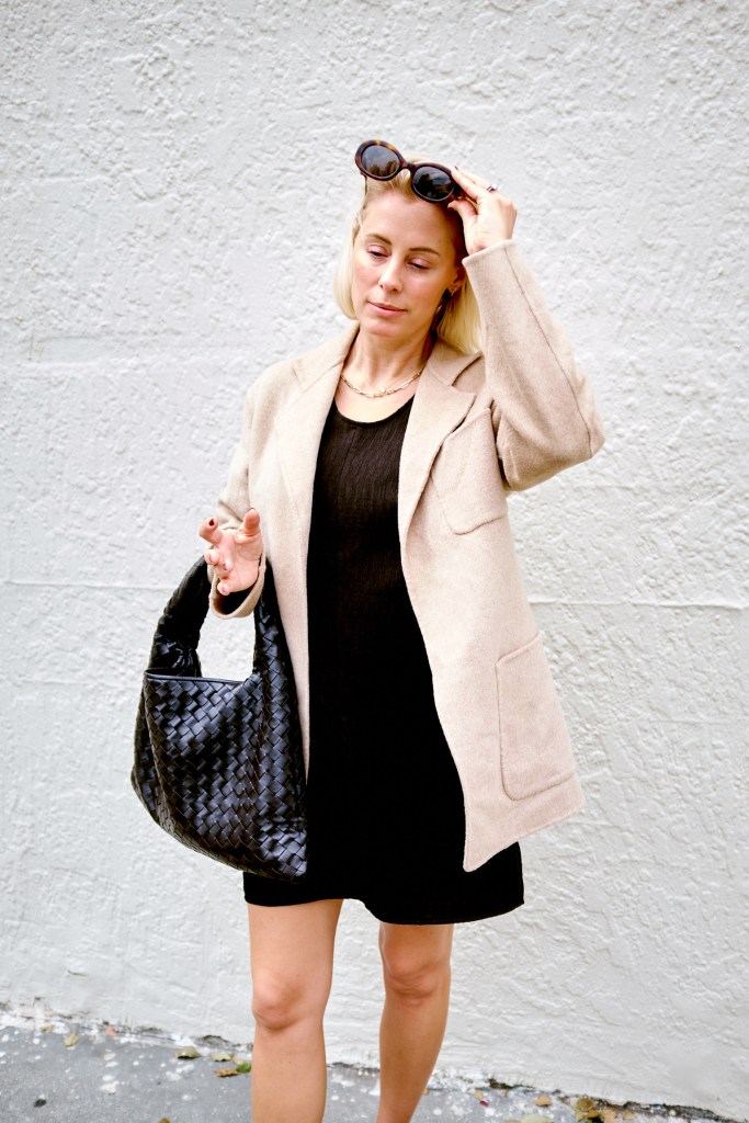 Perfekta jackan från Toteme, mjuk som en tröja, dressad som en kavaj. Perfekt till allt och alla tillfällen, här över en klänning från By Malene Birger på farmers market igår.